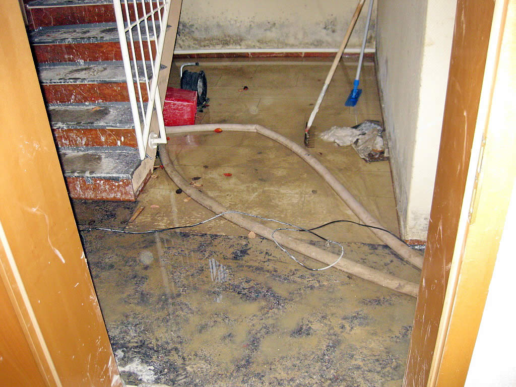 Das Wasser steht im Keller. Häufig kann der Keller nur noch mit Gummistiefeln betreten werden.